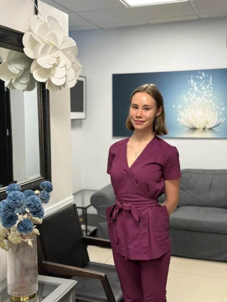 W gabinecie Klaudia nie tylko wykonuje zabiegi takie jak depilacja laserowa czy mezoterapia mikroigłowa, ale również aktywnie asystuje lekarzowi przy procedurach z zakresu medycyny estetycznej. Prowadzi konsultacje kosmetologiczne, zawsze stawiając na indywidualne podejście, bezpieczeństwo i skuteczność terapii. Jej pasją jest łączenie wiedzy akademickiej z codzienną praktyką, by zapewnić pacjentom najwyższy standard opieki i widoczne efekty zabiegów.